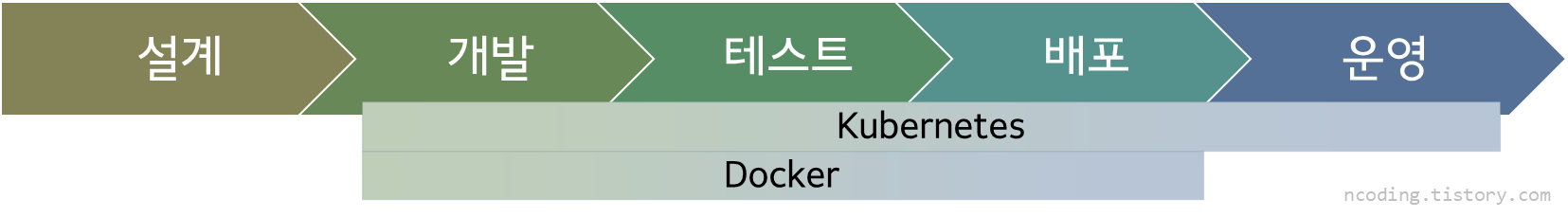이 그림은 개발 LifeCycle에서 Docker와 Kubenetes가 커버하는 영역을 나타낸다. 개발에서부터 운영까지의 영역을 하나의 팀에서 담당하는 문화인 Devops는, 24/7 죽지 않는 서비스에 해당하는 운영 측면까지 생각하지 않을 수 없다. Kubernetes는 이를 위해 도입되었다고 생각하면 된다.