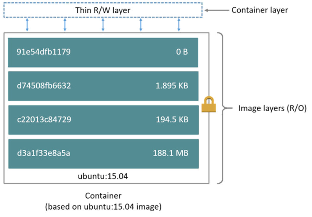 읽고 쓰기가 가능한 컨테이너 레이어에서 해당 컨테이너의 수정이 이루어진다.
