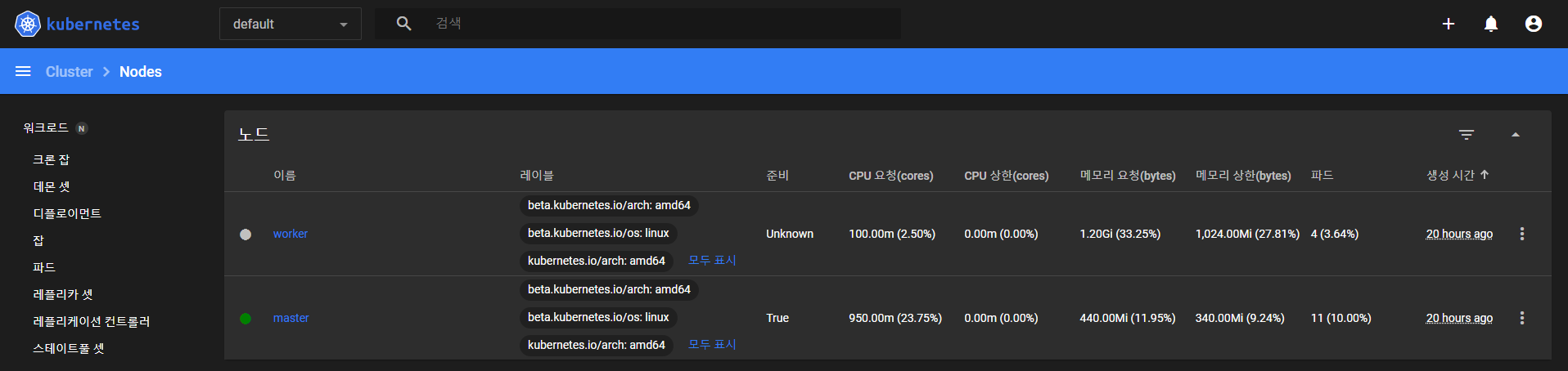 1-5 단계를 거친 경우 https://마스터노드IP:NodePort 로 접속 가능하다.